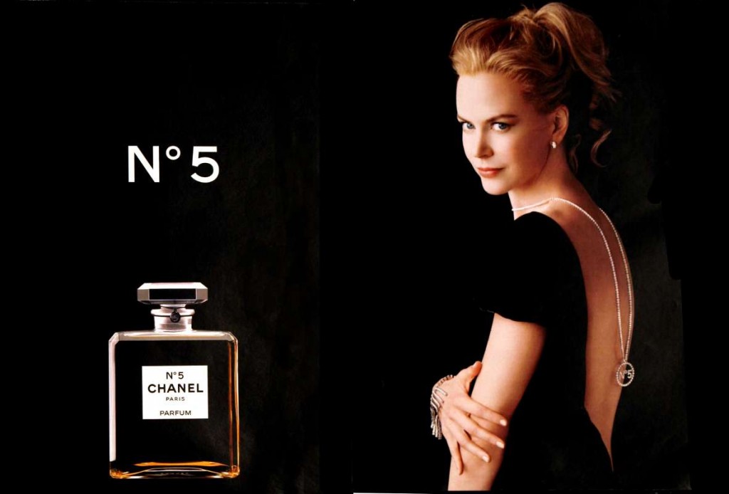 - Kidman interpreta uma estrela de cinema fugindo da fama, em um conto romântico e glamouroso, destacando o Chanel No. 5 como um perfume para mulheres inesquecíveis.